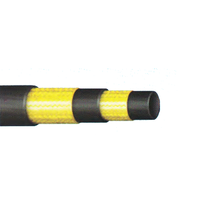 膠管由耐油的內(nèi)膠層、兩層高強鋼絲編織增強層、耐天候的外膠層組成。