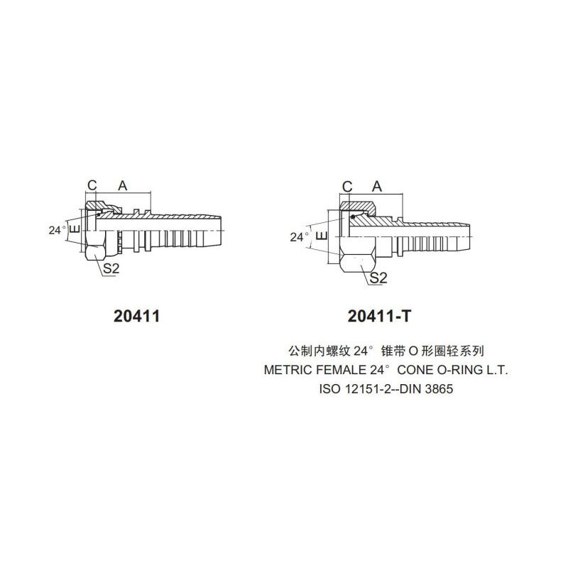 永華標準扣壓式接頭 20411和20411-T 公制內螺紋 24 錐帶O形圈輕系列METRIC FEMALE 24 CONE O-RING L.T.ISO 12