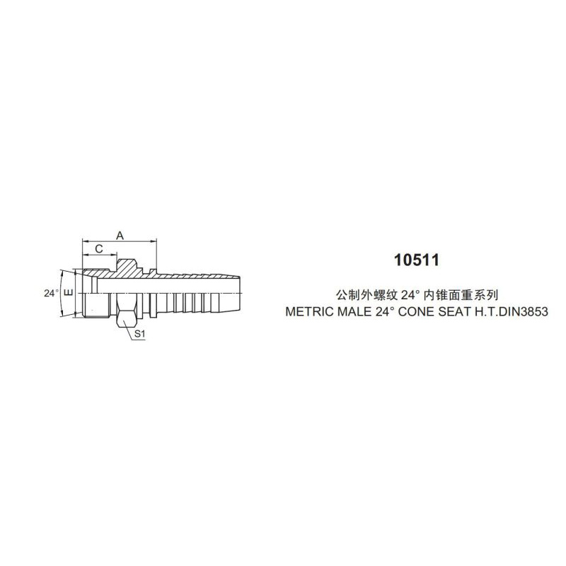 扣壓式接頭 10511 公制外螺紋 內(nèi)錐面重系列